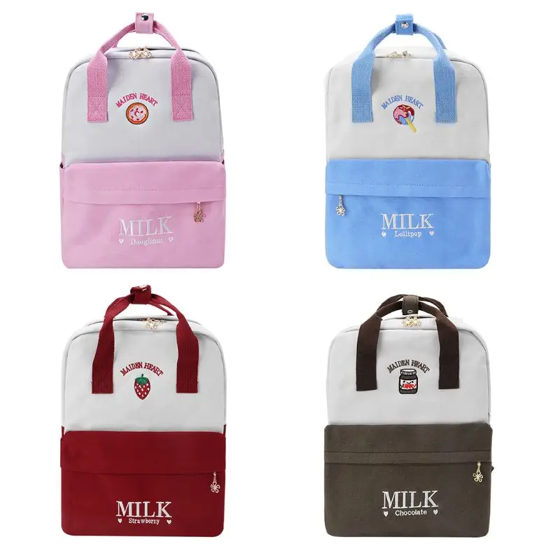 HOT Sale Cute Fruit Letter Embroidery Backpack School Shoulder Bag Canvas Laptop Travel Rucksack for Teenage